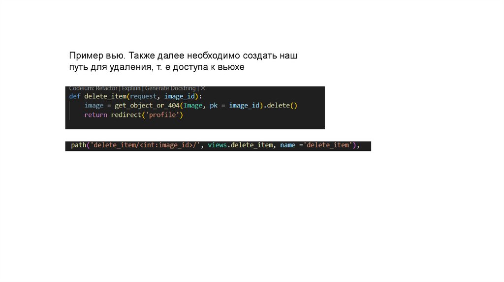 Пример вью. Также далее необходимо создать нашпуть для удаления, т. е доступа к вьюхе
