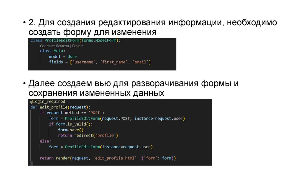 • 2. Для создания редактирования информации, необходимосоздать форму для изменения