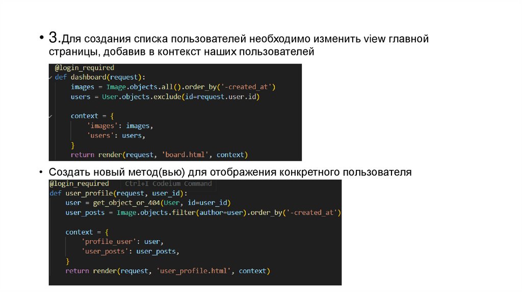 • Создать новый метод(вью) для отображения конкретного пользователя