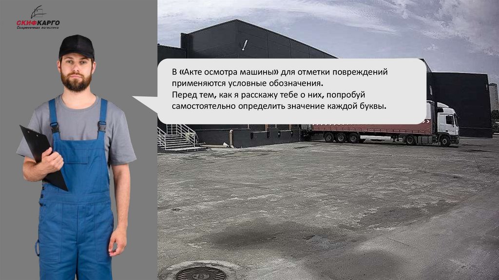 В «Акте осмотра машины» для отметки поврежденийприменяются условные обозначения.