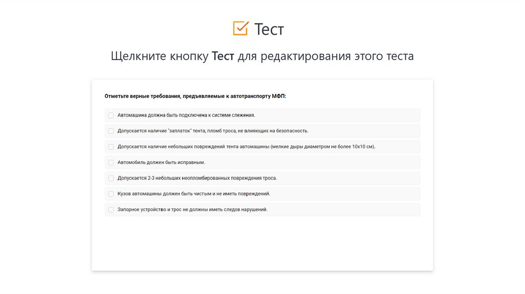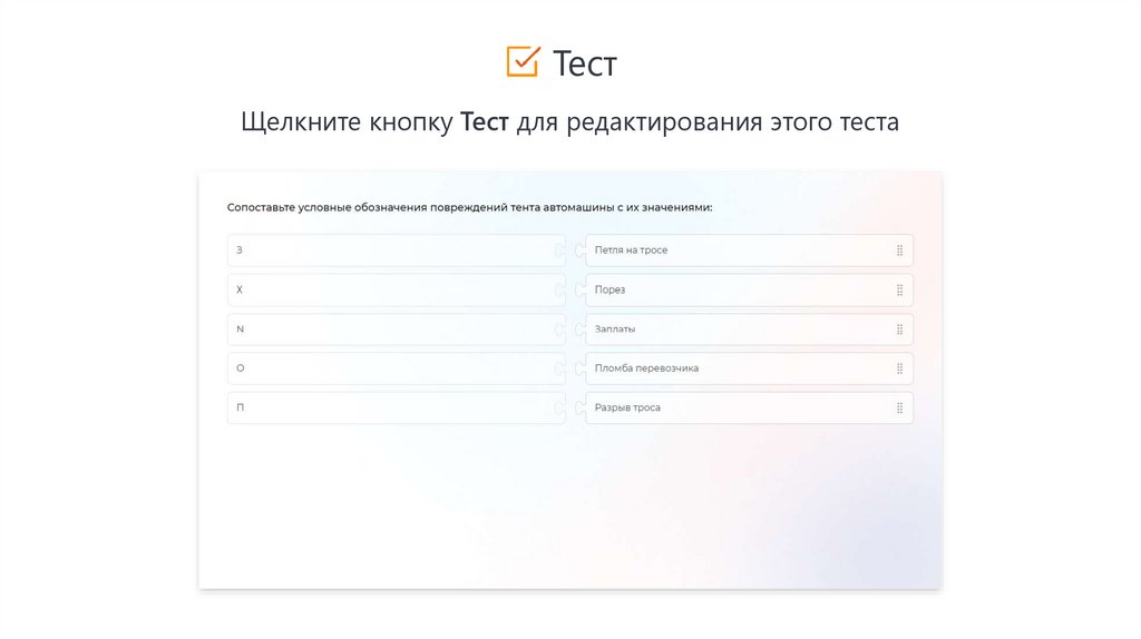 ТестЩелкните кнопку Тест для редактирования этого теста