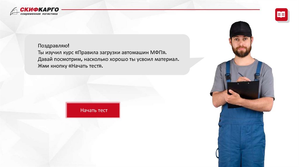 Поздравляю!Ты изучил курс «Правила загрузки автомашин МФП».