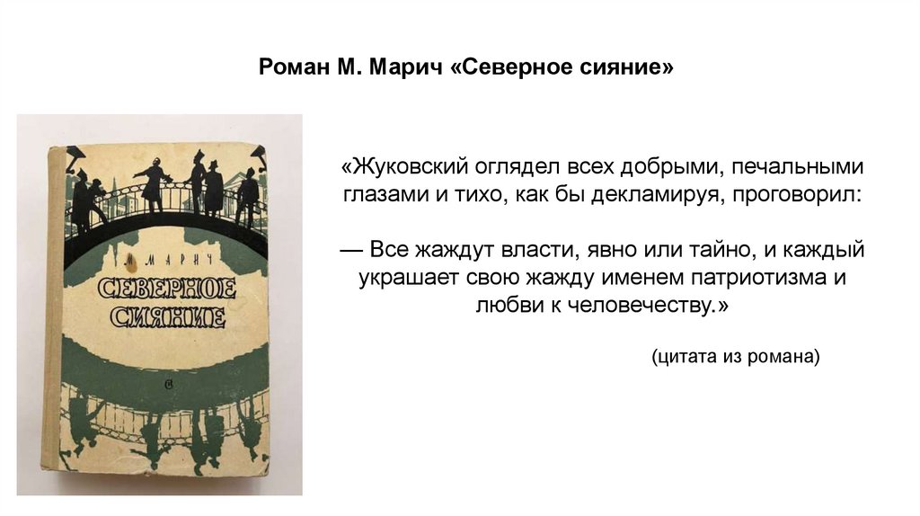 Роман М. Марич «Северное сияние»«Жуковский оглядел всех добрыми, печальными