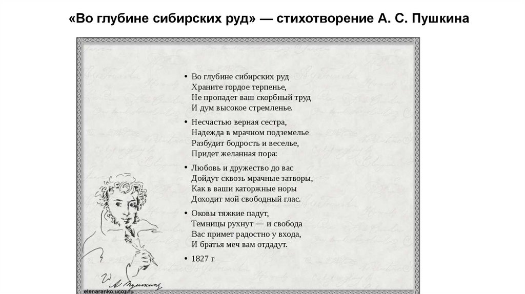«Во глубине сибирских руд» — стихотворение А. С. Пушкина6.