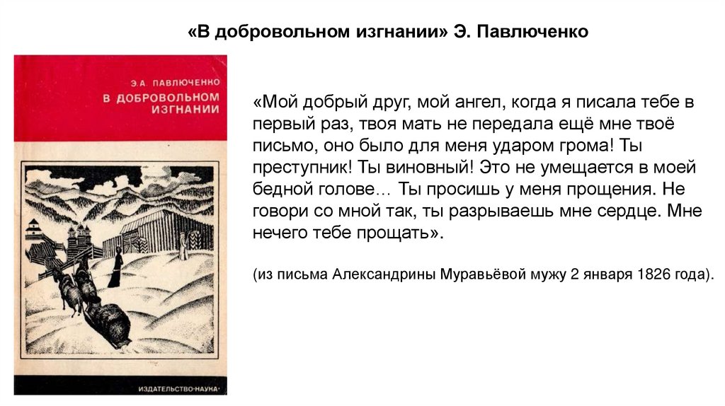 «В добровольном изгнании» Э. Павлюченко«Мой добрый друг, мой ангел, когда я писала тебе в