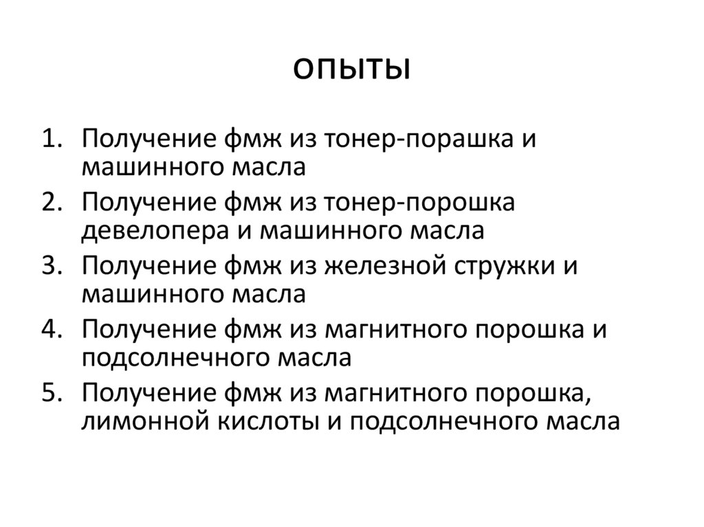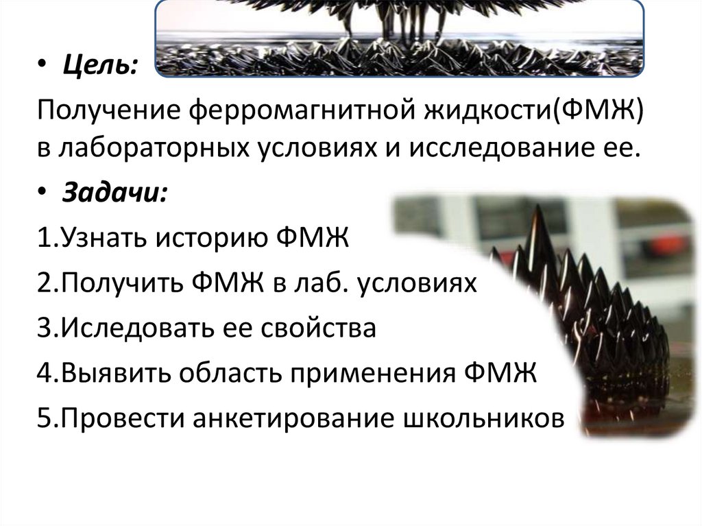 • Цель:Получение ферромагнитной жидкости(ФМЖ)