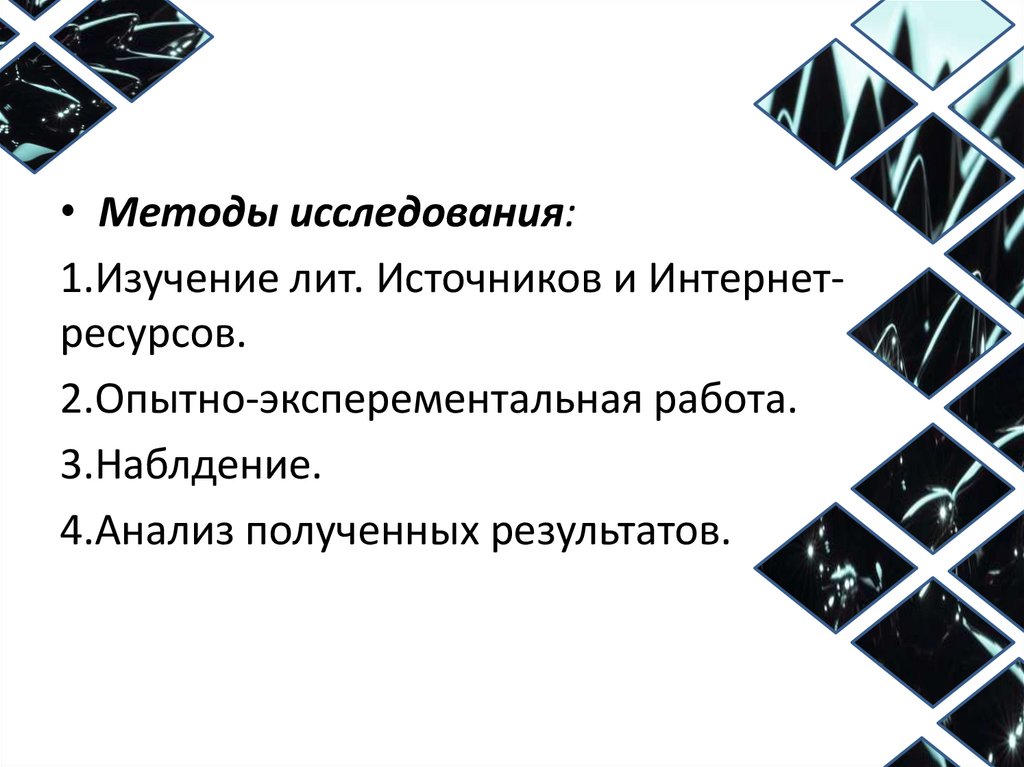 • Методы исследования:1.Изучение лит. Источников и Интернетресурсов.