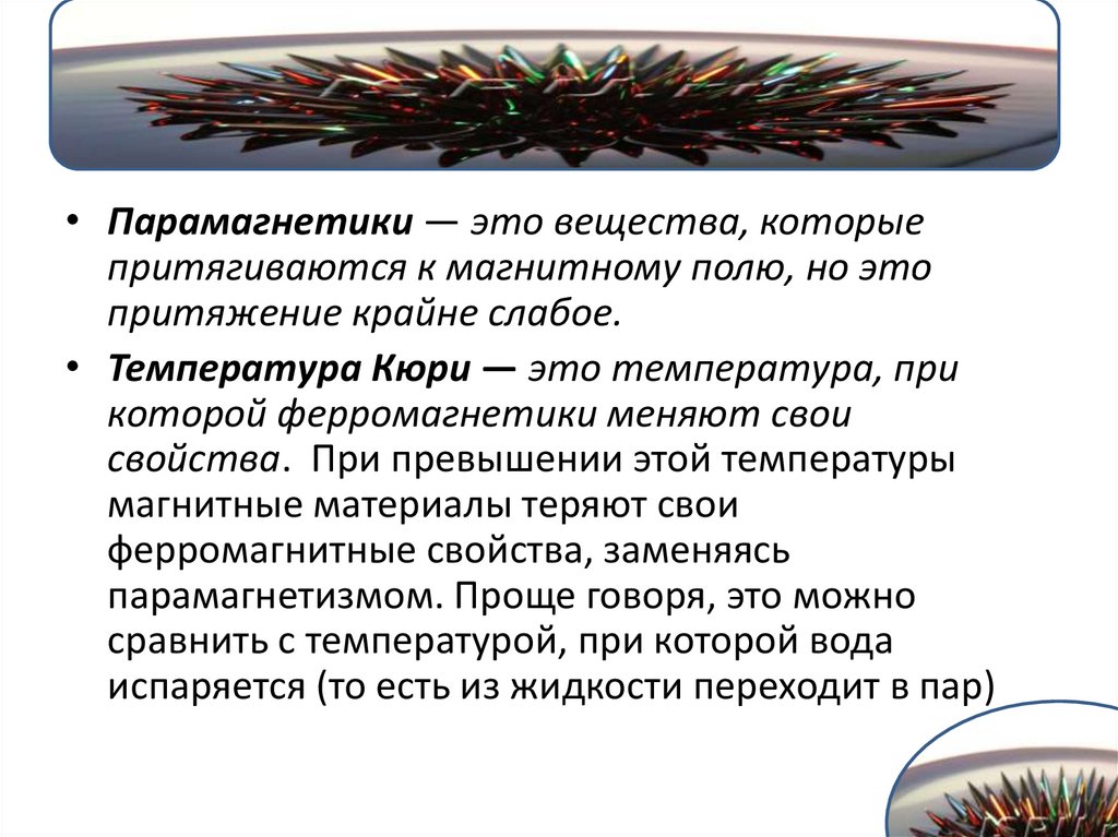• Парамагнетики — это вещества, которыепритягиваются к магнитному полю, но это