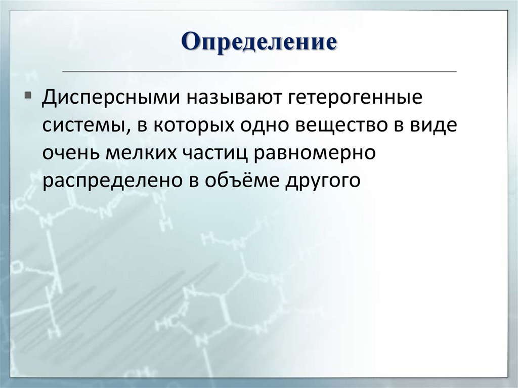 Дисперсными называют гетерогенныесистемы, в которых одно вещество в виде