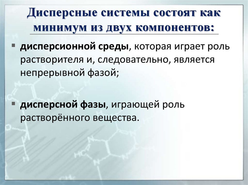 дисперсионной среды, которая играет рольрастворителя и, следовательно, является