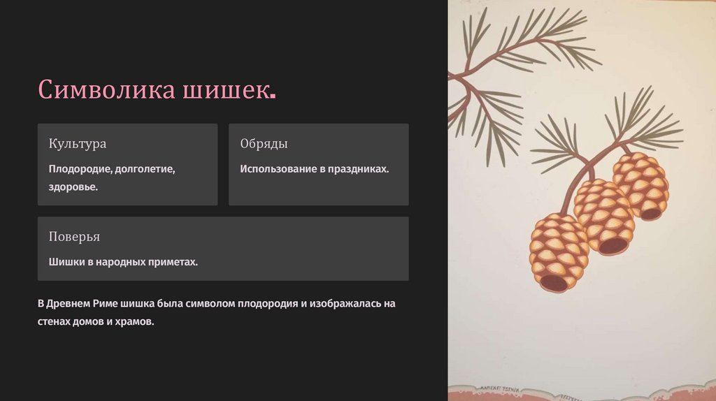 В Древнем Риме шишка была символом плодородия и изображалась на