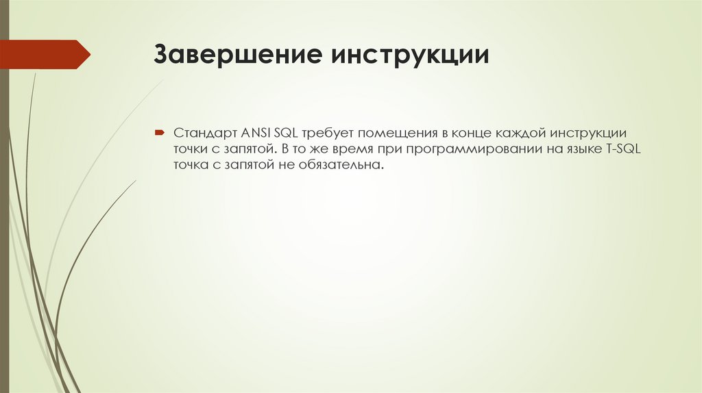 Завершение инструкцииСтандарт ANSI SQL требует помещения в конце каждой инструкции