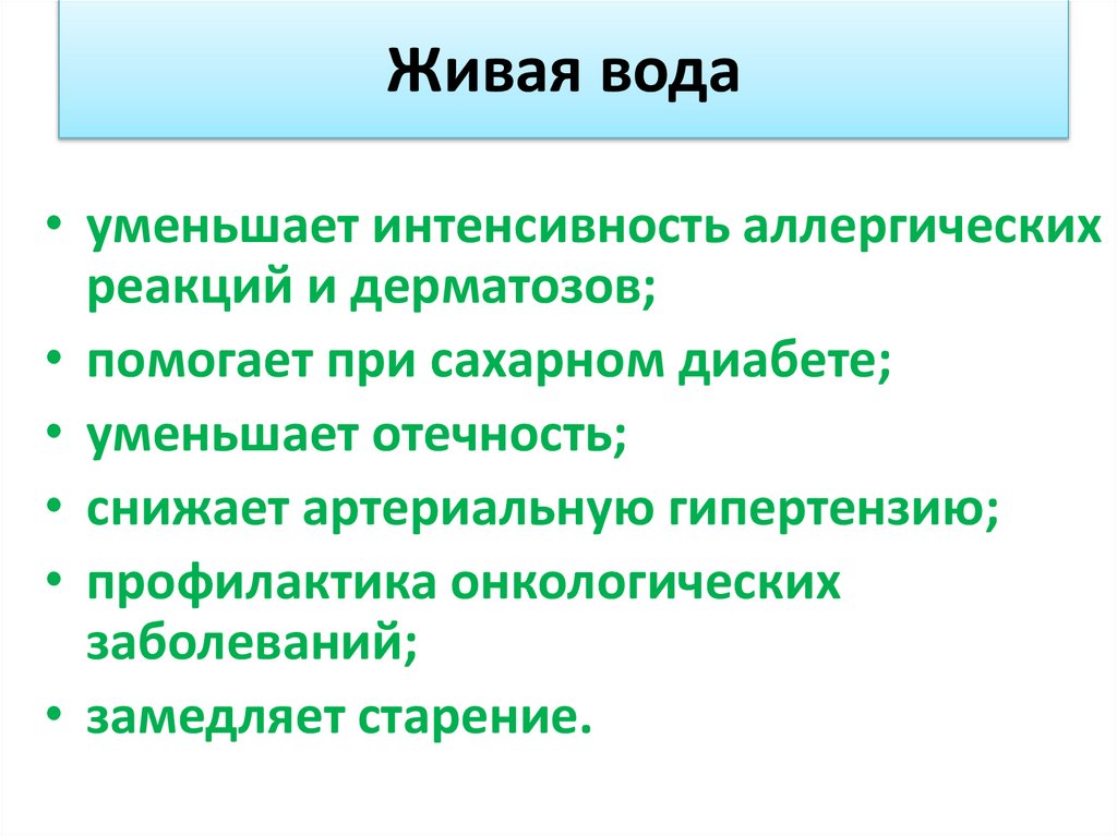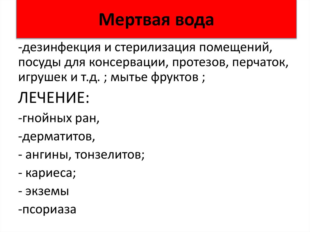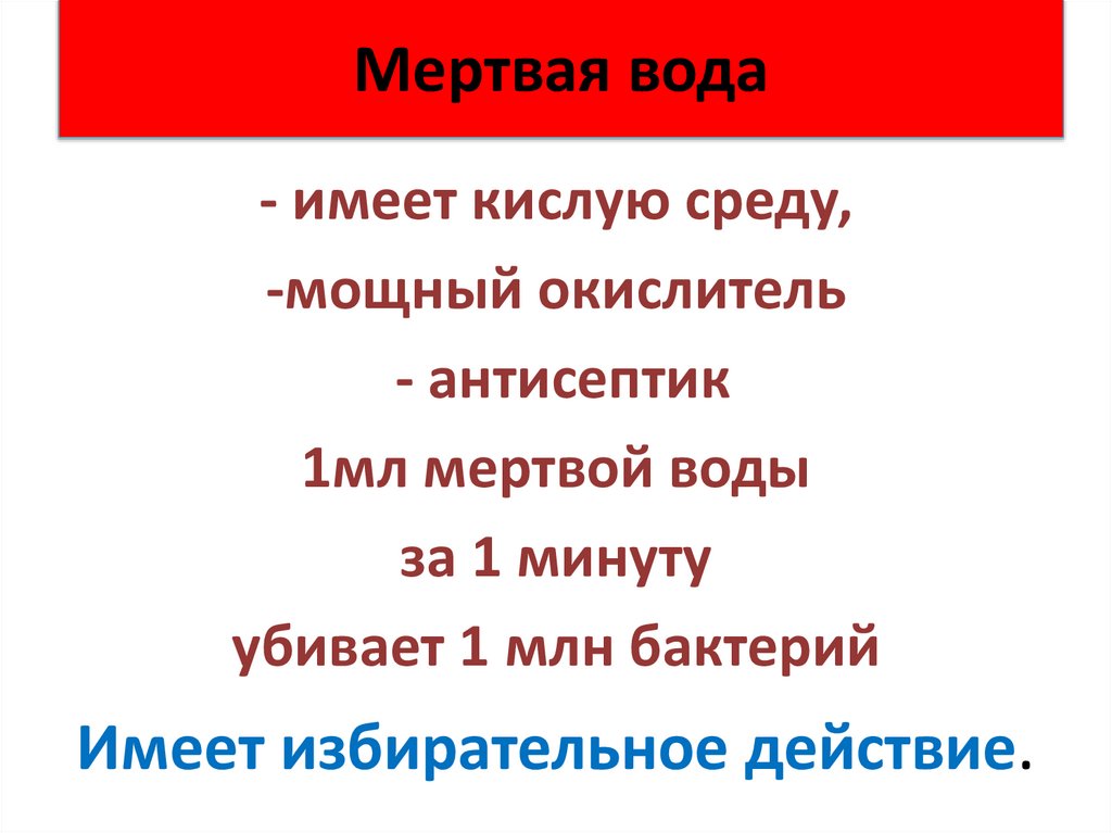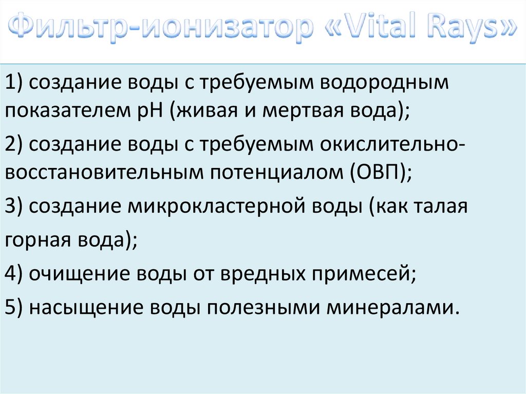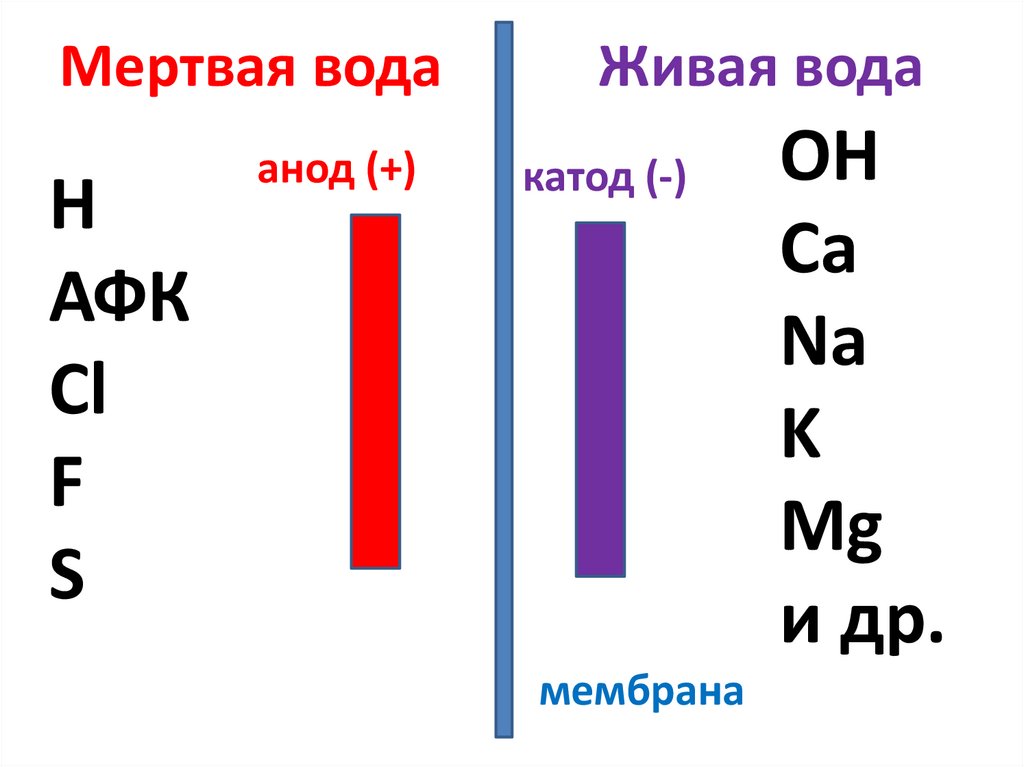 1) создание воды с требуемым водороднымпоказателем рН (живая и мертвая вода);