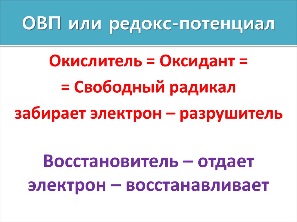 ОВП или редокс-потенциалОкислитель = Оксидант =