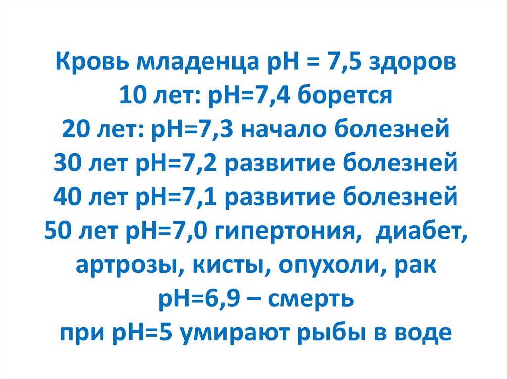 Кровь младенца рН = 7,5 здоров10 лет: рН=7,4 борется