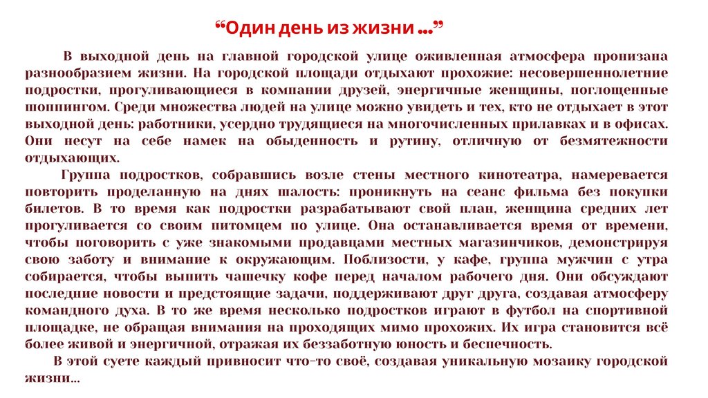 “Один день из жизни ...”В выходной день на главной городской улице оживленная атмосфера пронизана