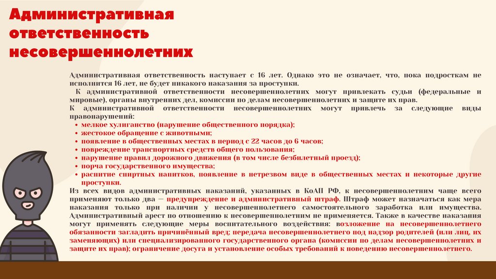 К административной ответственности несовершеннолетних могут привлечь за следующие виды