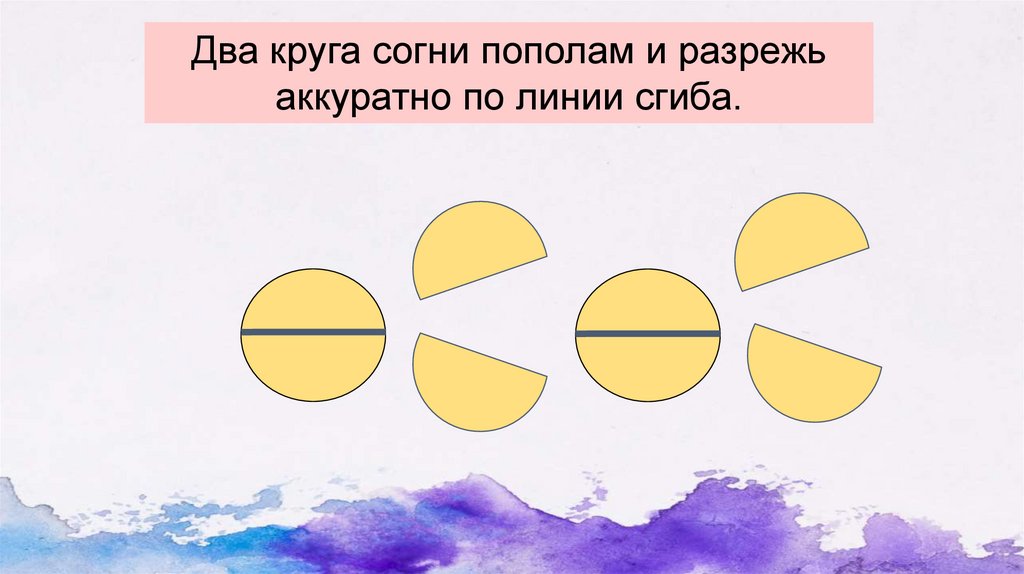 Два круга согни пополам и разрежьаккуратно по линии сгиба.