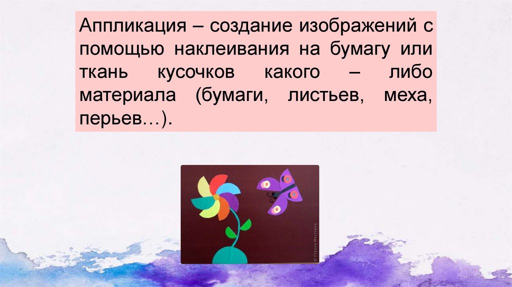 Аппликация – создание изображений спомощью наклеивания на бумагу или