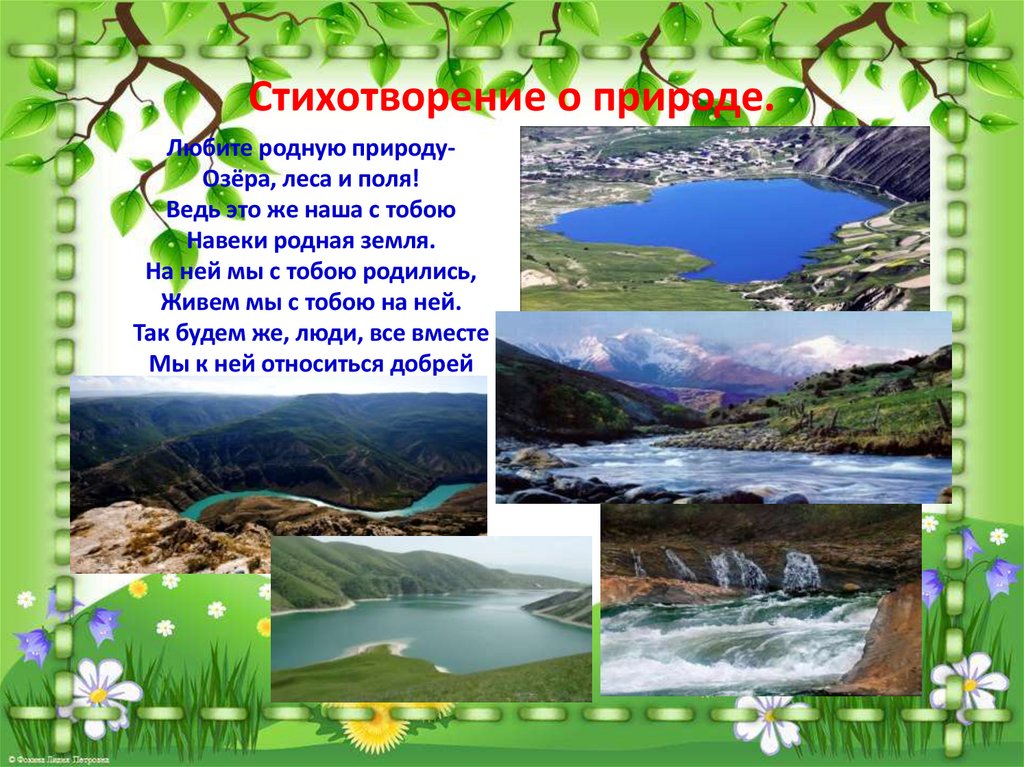 Стихотворение о природе.Любите родную природуОзёра, леса и поля!