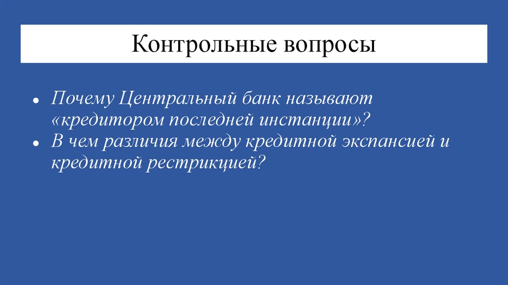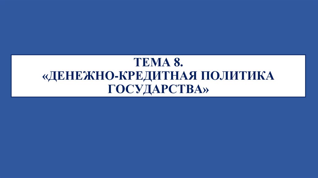 ТЕМА 8.«ДЕНЕЖНО-КРЕДИТНАЯ ПОЛИТИКА
