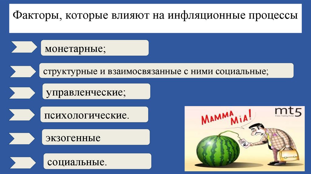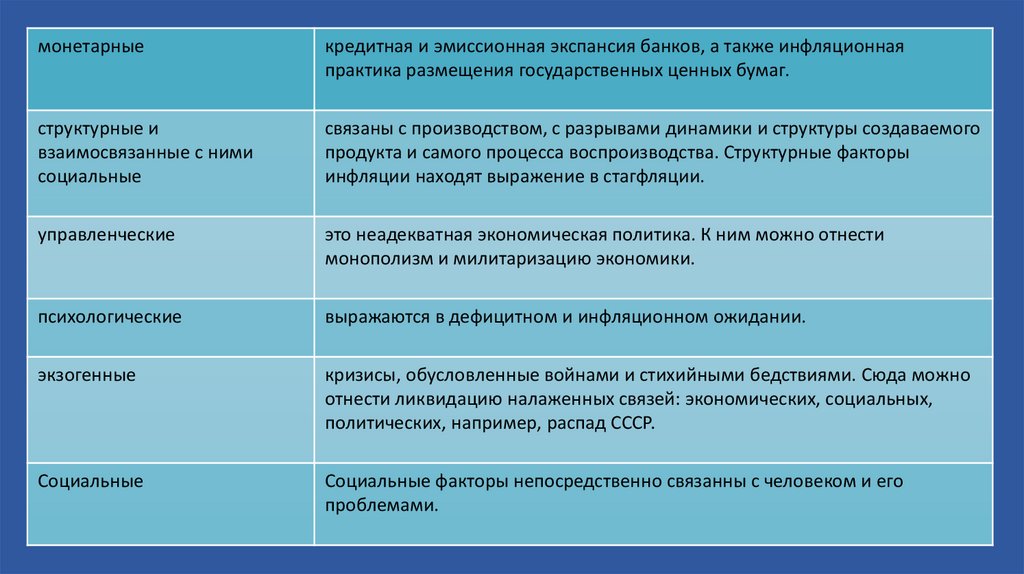 Факторы, которые влияют на инфляционные процессымонетарные;