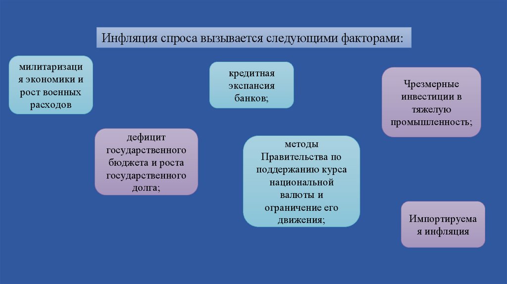 Инфляция спроса вызывается следующими факторами:милитаризаци