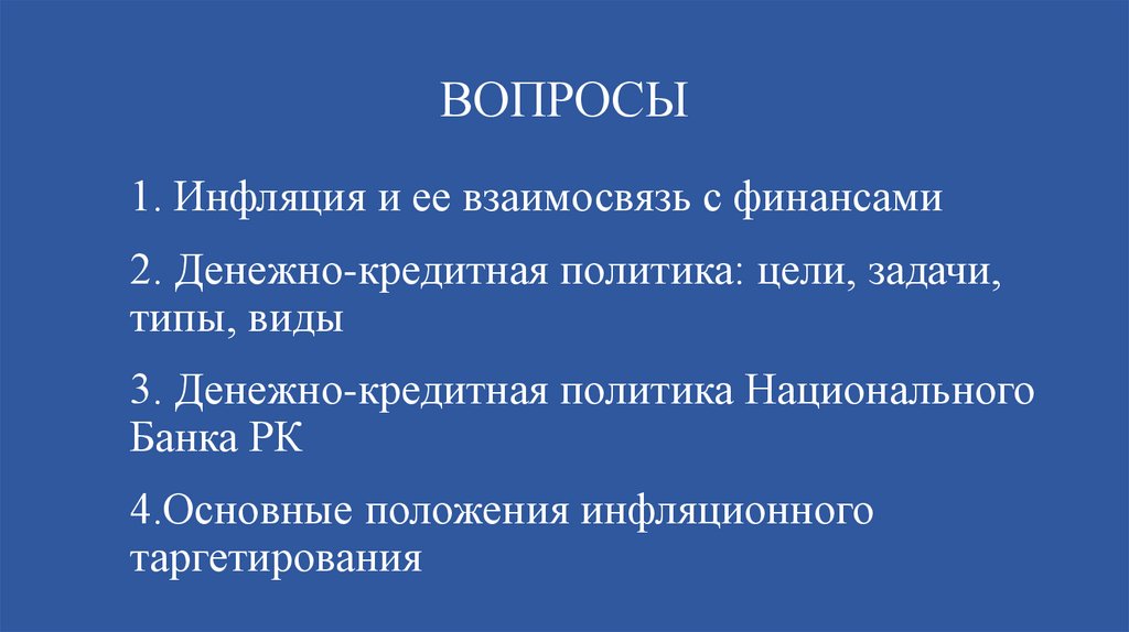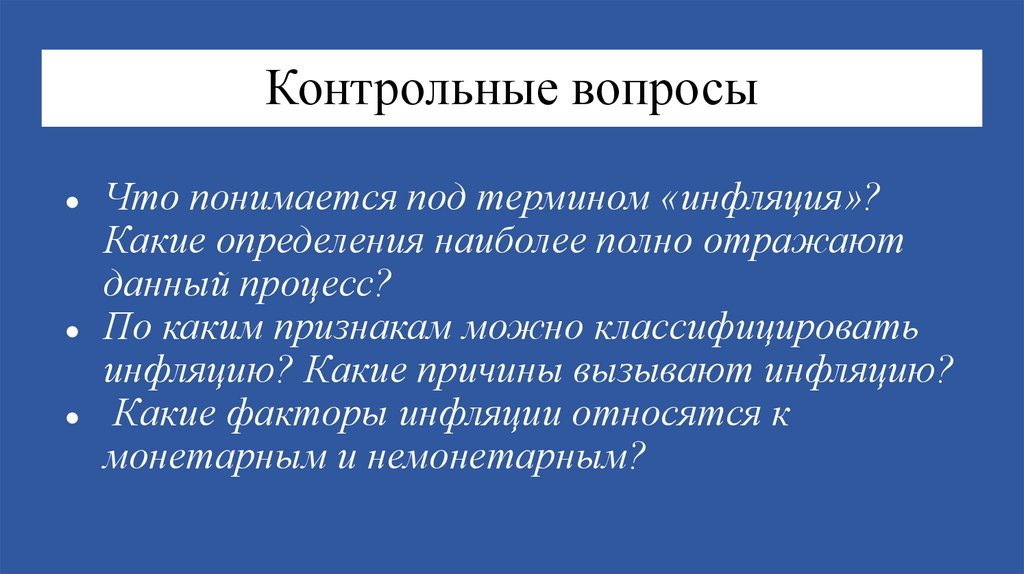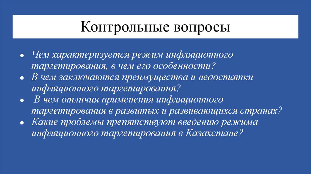 Контрольные вопросыЧем характеризуется режим инфляционного