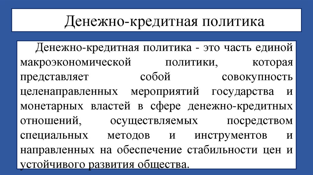 ДЕНЕЖНО-КРЕДИТНАЯ ПОЛИТИКАГОСУДАРСТВА