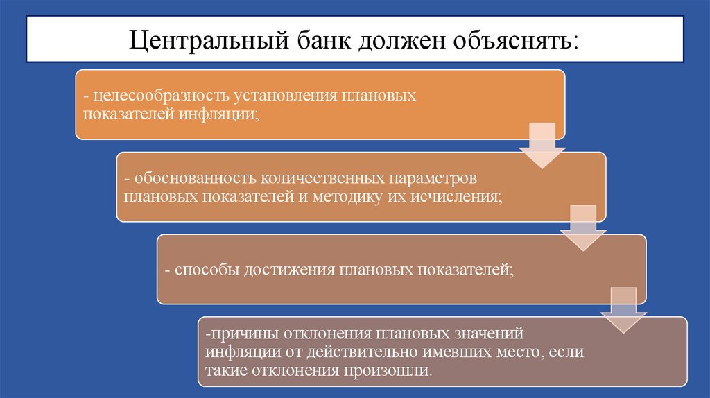Центральный банк должен объяснять:- целесообразность установления плановых