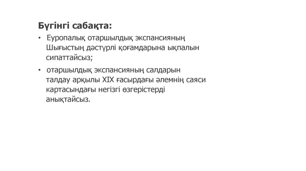 Бүгінгі сабақта:• Еуропалық отаршылдық экспансияның