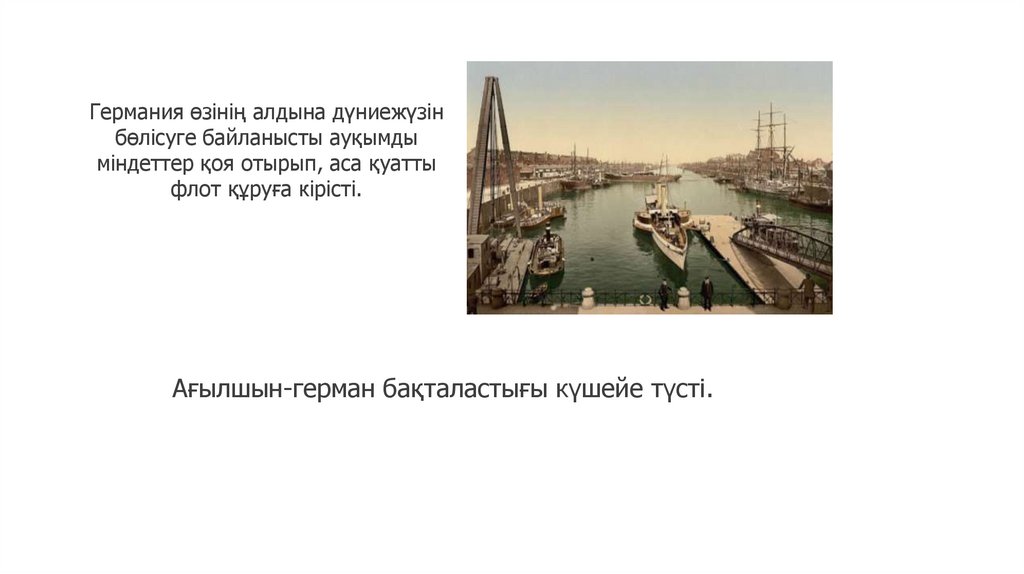 Германия өзінің алдына дүниежүзінбөлісуге байланысты ауқымды