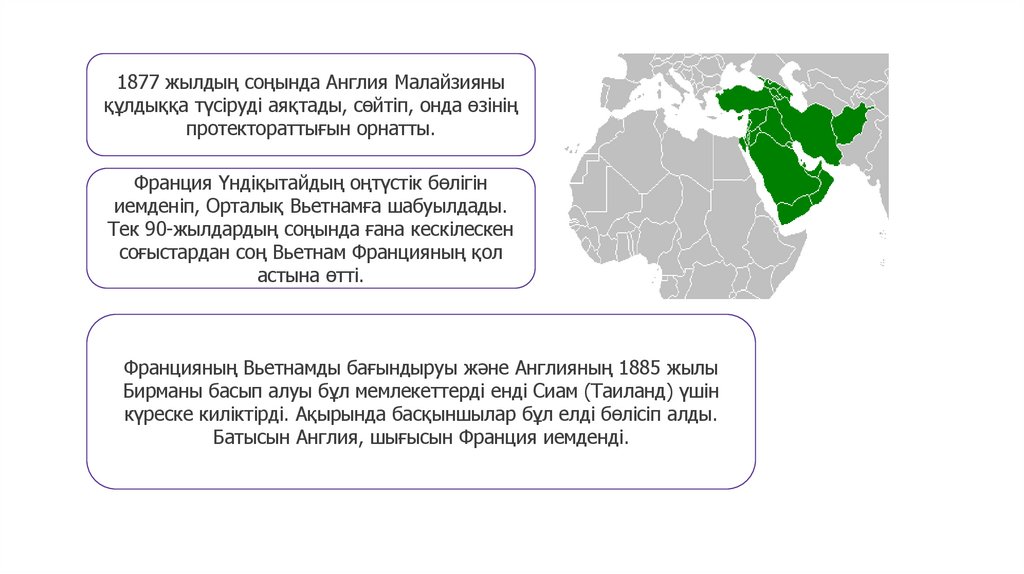 1877 жылдың соңында Англия Малайзиянықұлдыққа түсіруді аяқтады, сөйтіп, онда өзінің