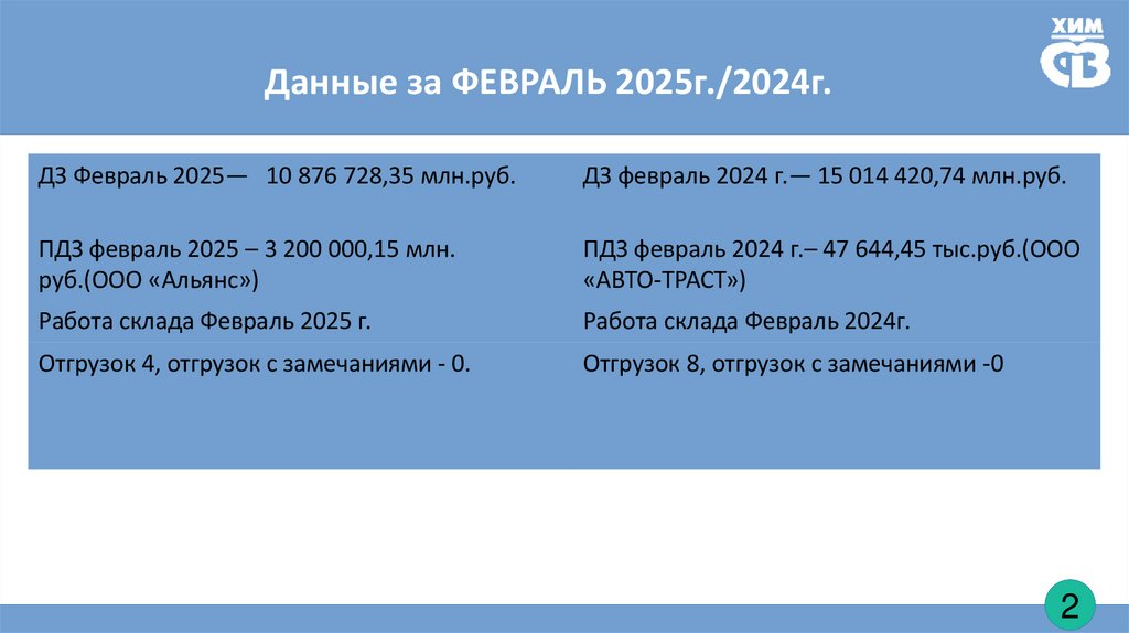 Данные за ФЕВРАЛЬ 2025г./2024г.ДЗ Февраль 2025— 10 876 728,35 млн.руб.