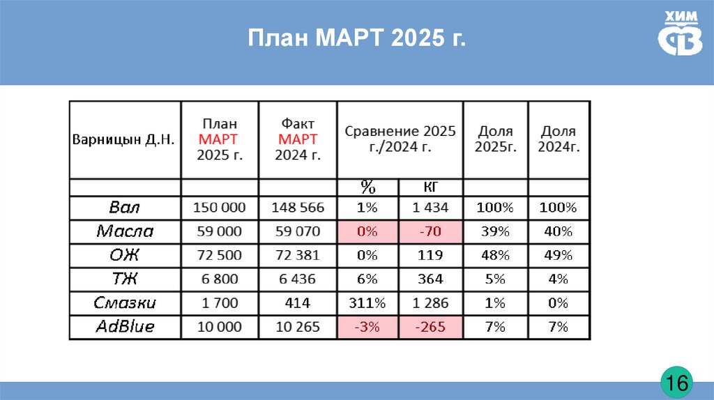 Отчет по работе за ФЕВРАЛЬ 2025г./ 2024 год. Территория продаж УФО, менеджер Варницын Д.Н