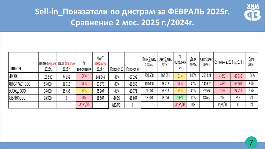 Sell-in_Показатели по дистрам за ФЕВРАЛЬ 2025г.Сравнение 2 мес. 2025 г./2024г.