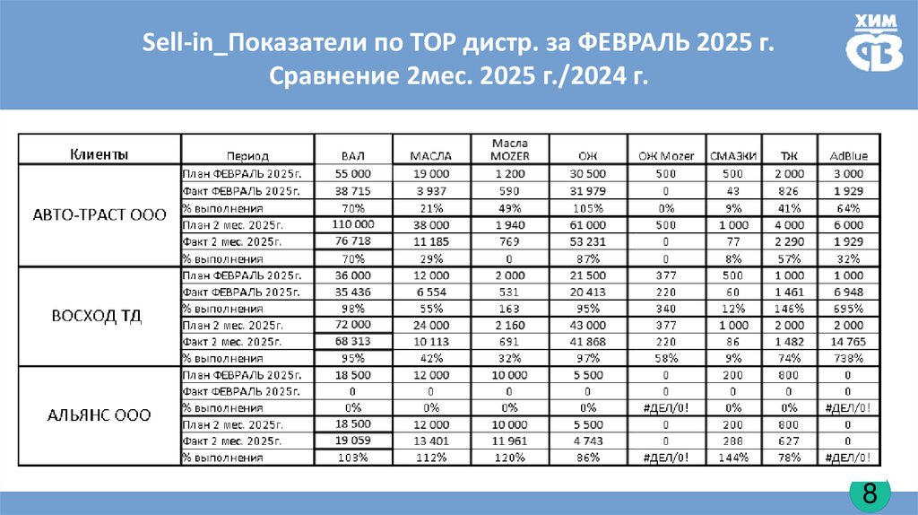 Sell-in_Показатели по ТОР дистр. за ФЕВРАЛЬ 2025 г.Сравнение 2мес. 2025 г./2024 г.