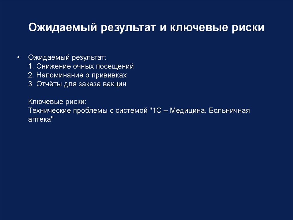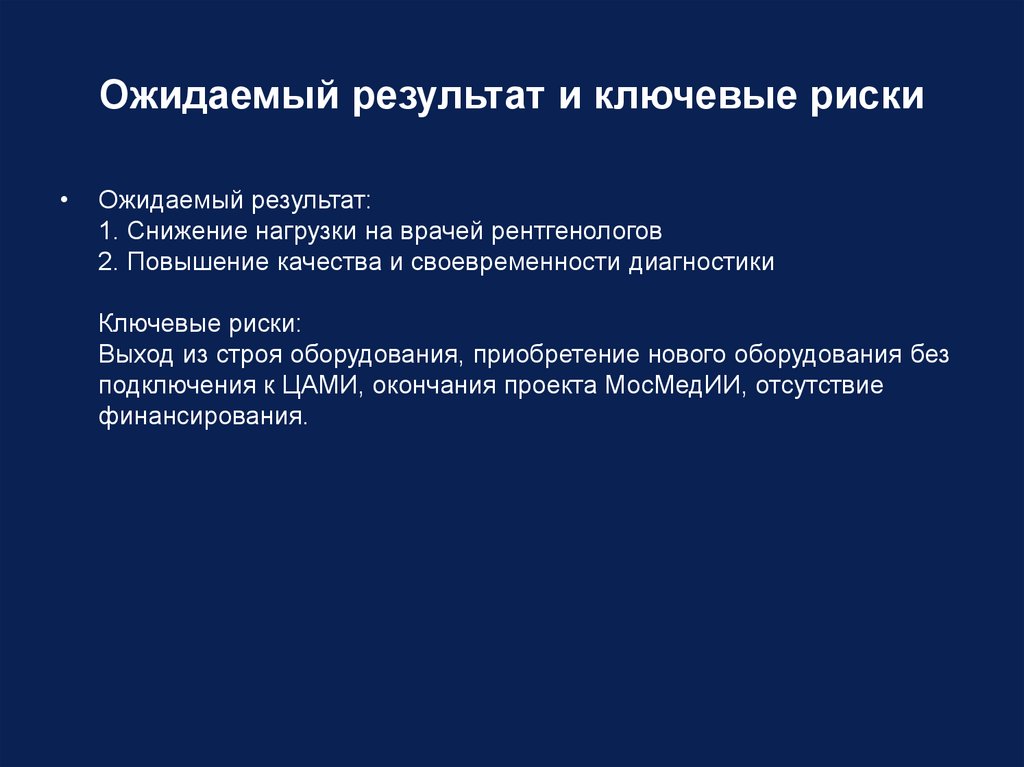 Ожидаемый результат и ключевые рискиОжидаемый результат: