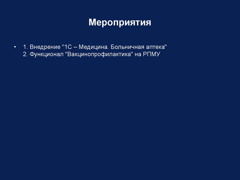 Мероприятия1. Внедрение "1С – Медицина. Больничная аптека"