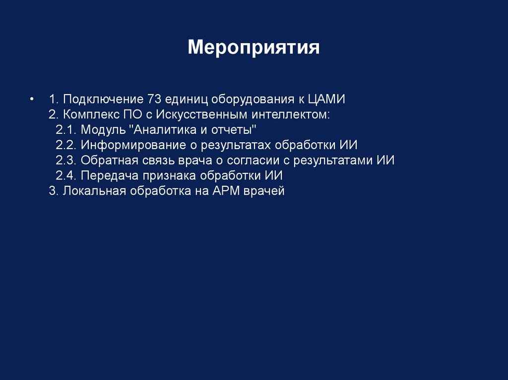 Мероприятия1. Подключение 73 единиц оборудования к ЦАМИ