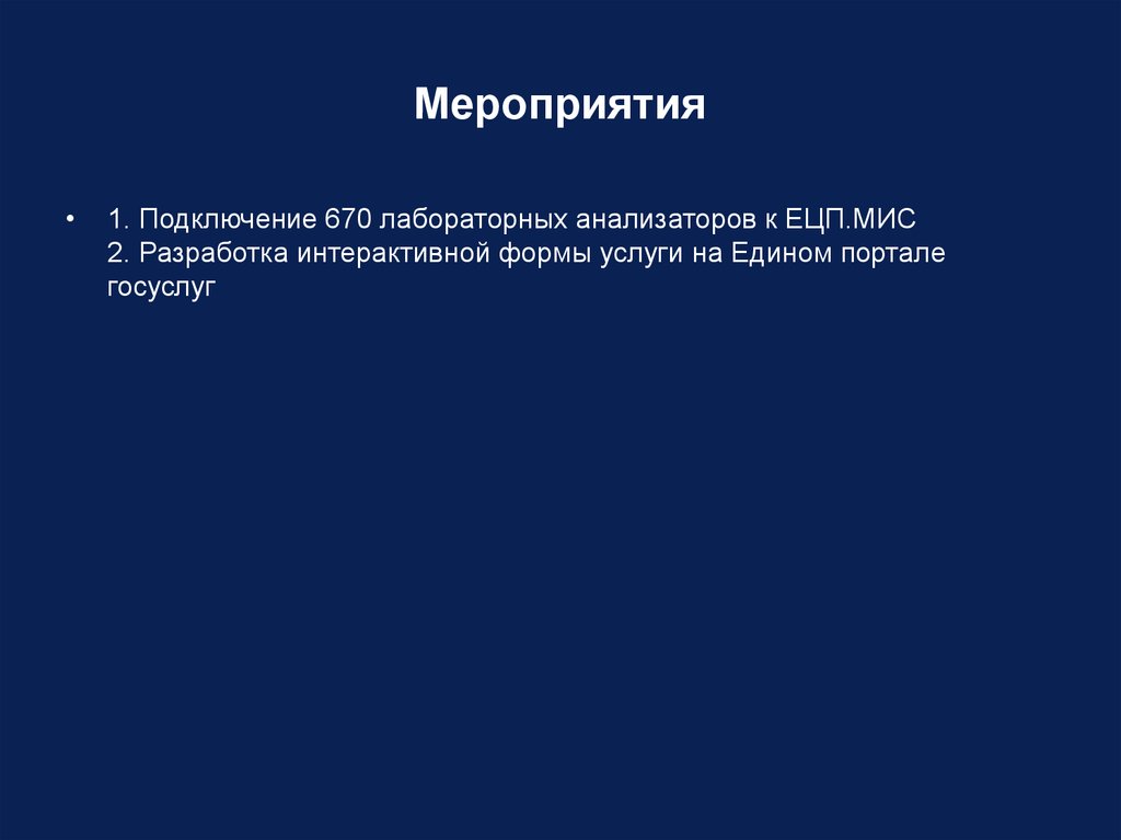 Мероприятия1. Подключение 670 лабораторных анализаторов к ЕЦП.МИС