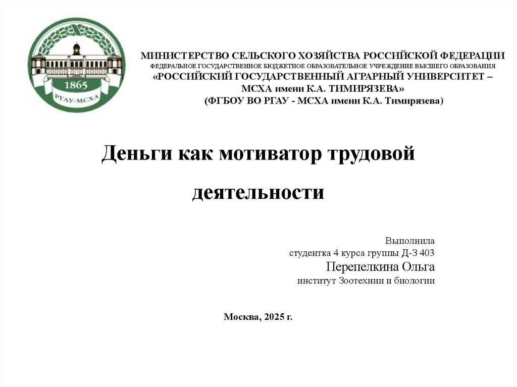 (ФГБОУ ВО РГАУ - МСХА имени К.А. Тимирязева)