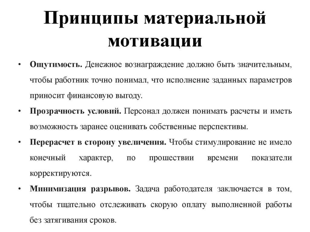 • Прозрачность условий. Персонал должен понимать расчеты и иметь