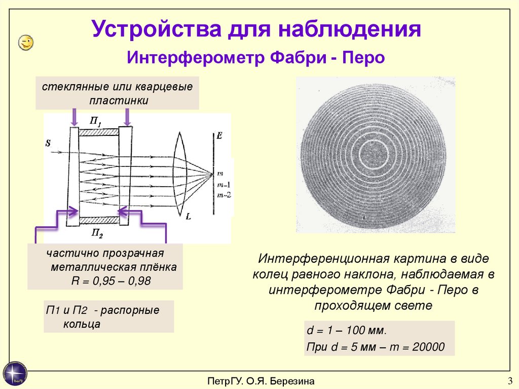 Устройства для наблюденияИнтерферометр Фабри - Перо