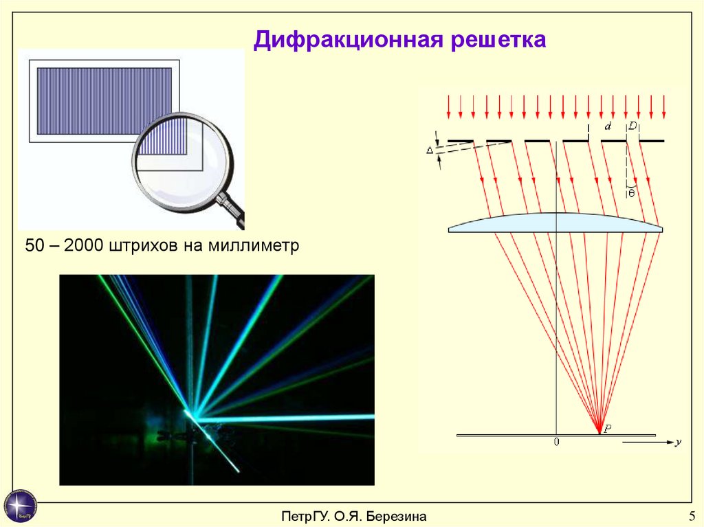 Дифракционная решетка50 – 2000 штрихов на миллиметр