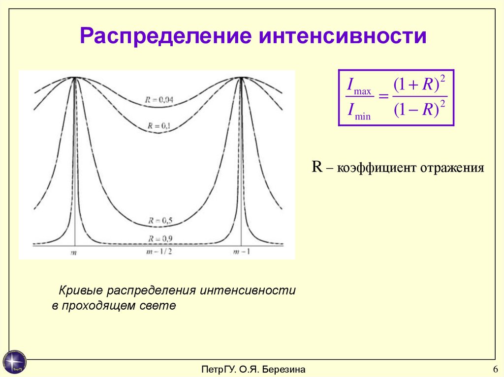 Распределение интенсивностиI max (1 R) 2