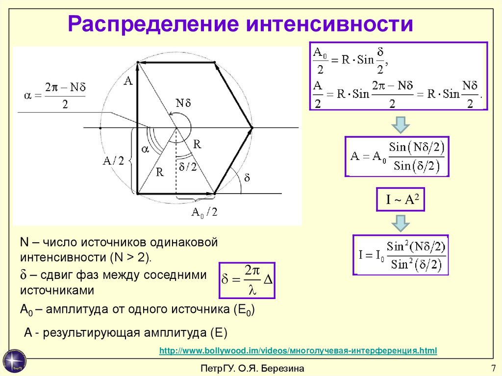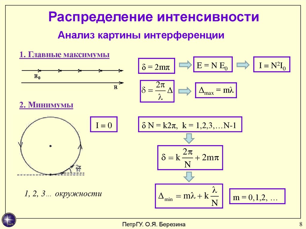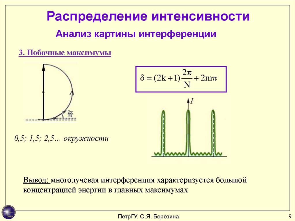 Распределение интенсивностиАнализ картины интерференции