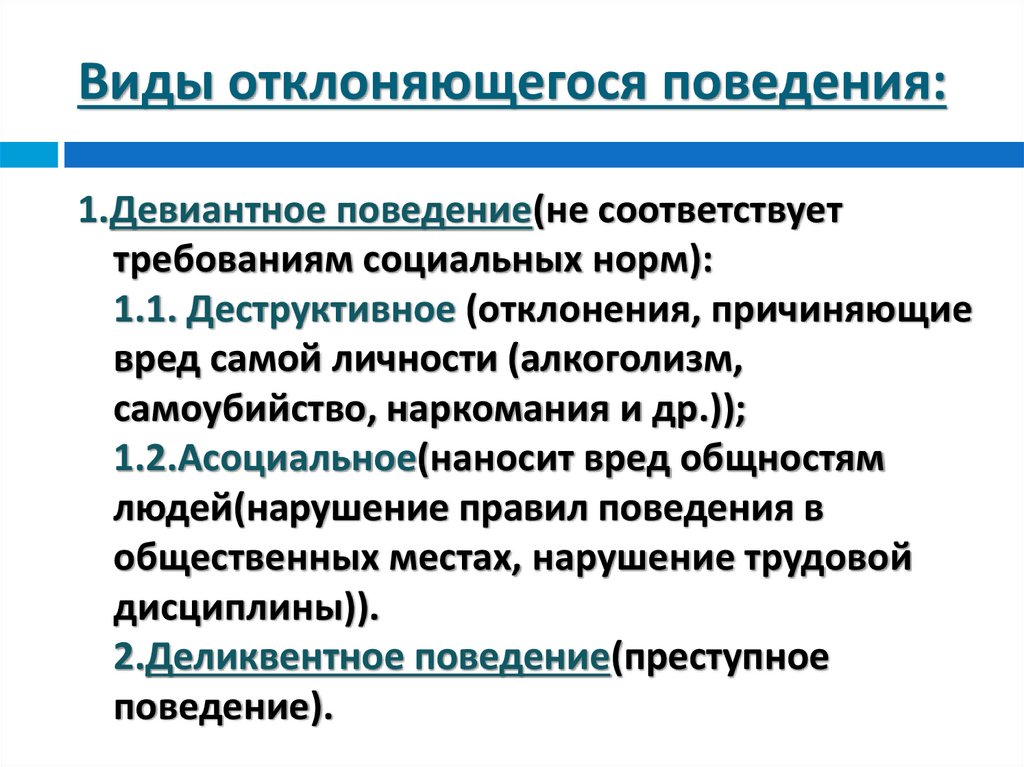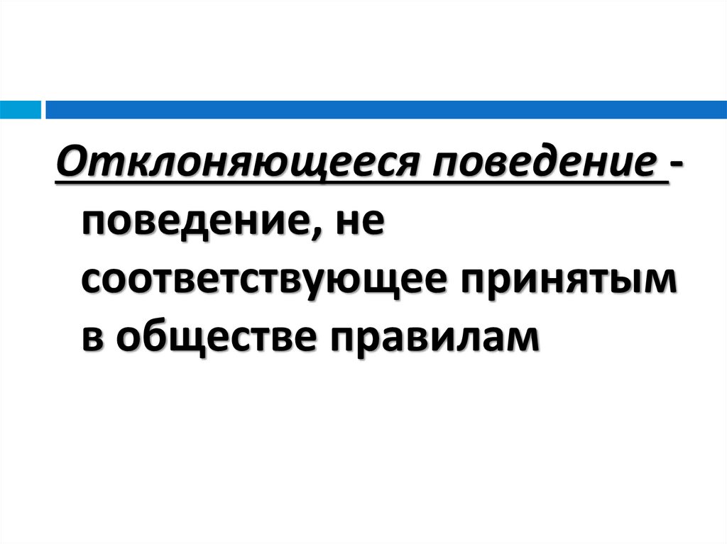 Отклоняющееся поведение поведение, несоответствующее принятым