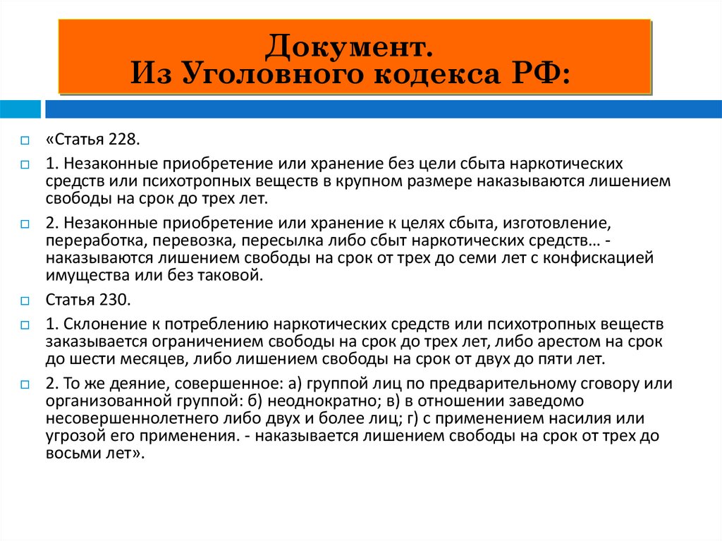 1. Незаконные приобретение или хранение без цели сбыта наркотических