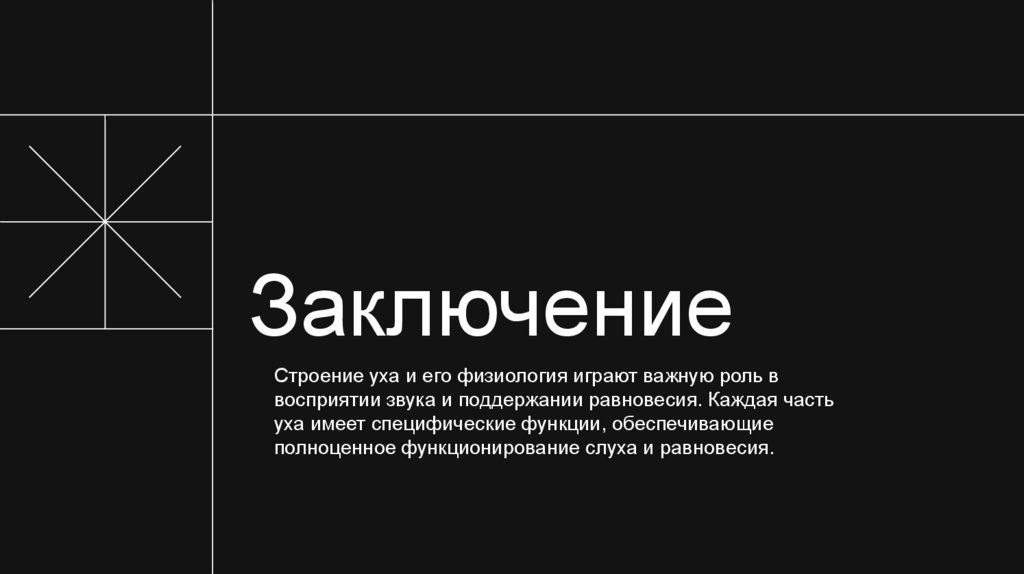 ЗаключениеСтроение уха и его физиология играют важную роль в